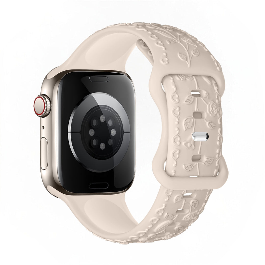 Embrace sophistication with the intricate floral patterns that grace the surface of our band, adding a touch of femininity and charm to your Apple Watch. Each detail is meticulously etched to ensure a seamless integration of artistry and technology, enhancing the beauty of your device.